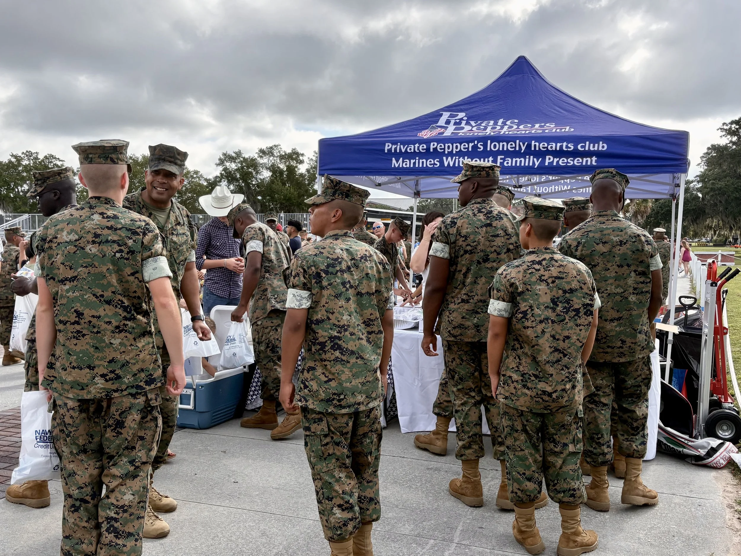 From that vision, Private Pepper’s Lonely Hearts Club was born, a volunteer-driven effort to welcome new Marines, offer them encouragement, and provide a way to call home. Volunteers greeted each Marine with a smile, a prepaid phone to connect with loved ones, a snack and drink, and words of support to remind them they were not alone.