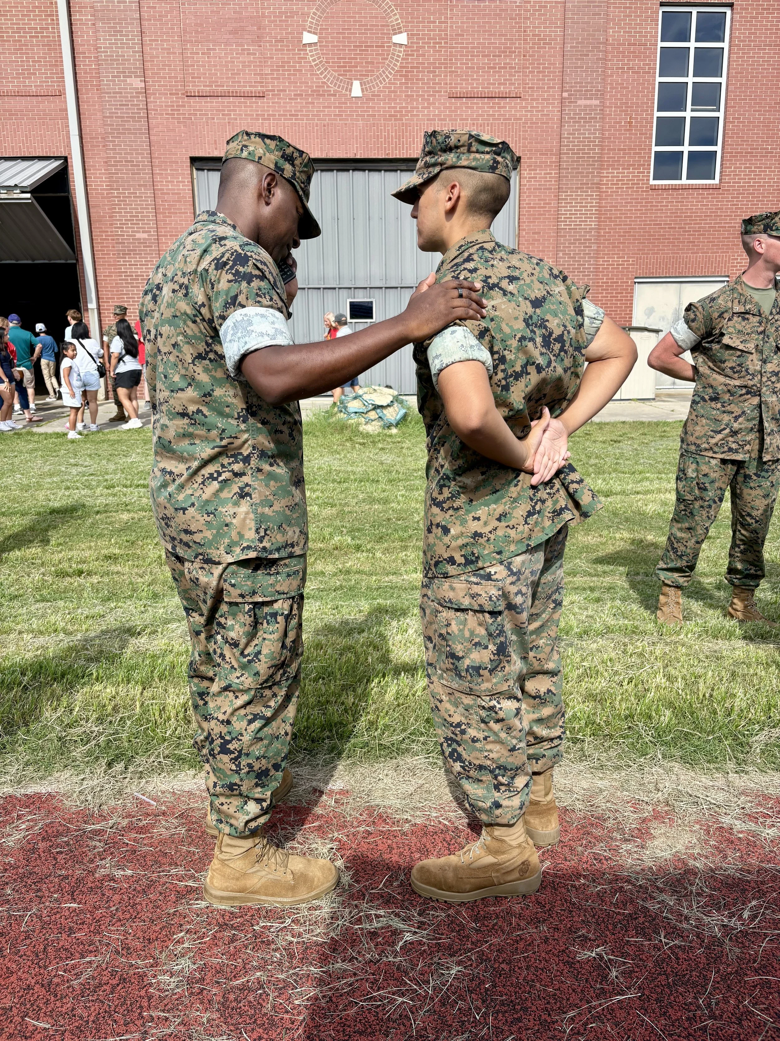 Recently, the program has expanded to include a tailgate-style event, giving Marines a space to relax, recharge their phones, enjoy a meal, and play games with their peers. Active-duty Marines also join the volunteer team, engaging with the new Marines about their MOS, future plans, and offering guidance and encouragement in ways that only fellow Marines can.